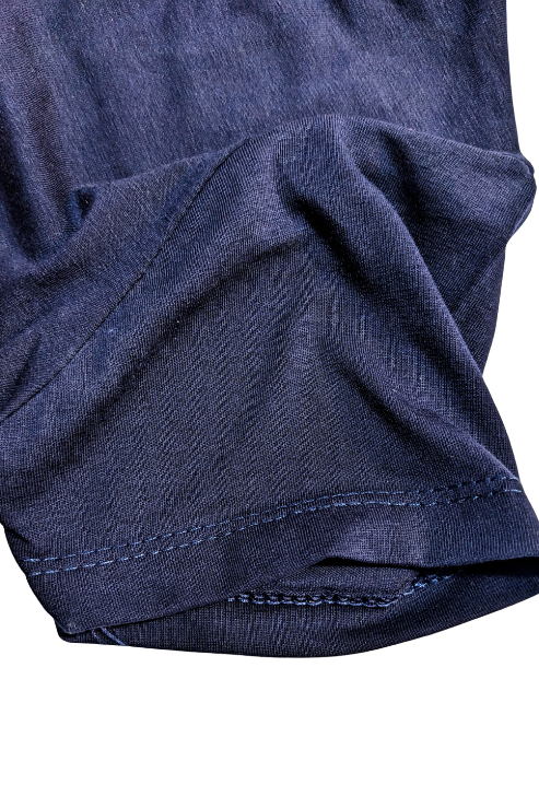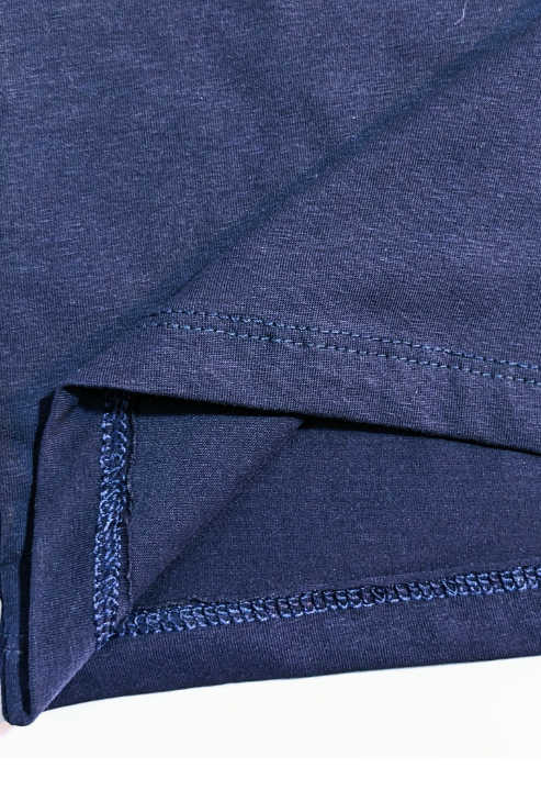 A deep navy blue t-shirt with a bold, multi-print design featuring modern typography, graphic patches, and travel-inspired elements. Crafted from soft, breathable fabric, this tee combines casual comfort with a statement-making style—perfect for adventurous young trendsetters who want to stand out.